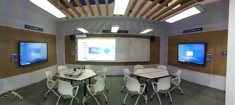 智慧教室113寸白板一體機(jī)+75寸飛龍系列液晶觸控一體機(jī)解決方案也是展會(huì)現(xiàn)場(chǎng)熱門打卡點(diǎn)。東方中原在深入了解教師需求后,發(fā)現(xiàn)很多老師困于學(xué)習(xí)各種產(chǎn)品軟件、硬件設(shè)備中。此次展出東方中原智慧教室,精簡方案,保證學(xué)生主動(dòng)參與到老師教學(xué)互動(dòng)過程中的提問、解釋、討論、演示、評(píng)價(jià)等環(huán)節(jié)。同時(shí)也簡單易操作,可以幫助老師有效“減負(fù)”。