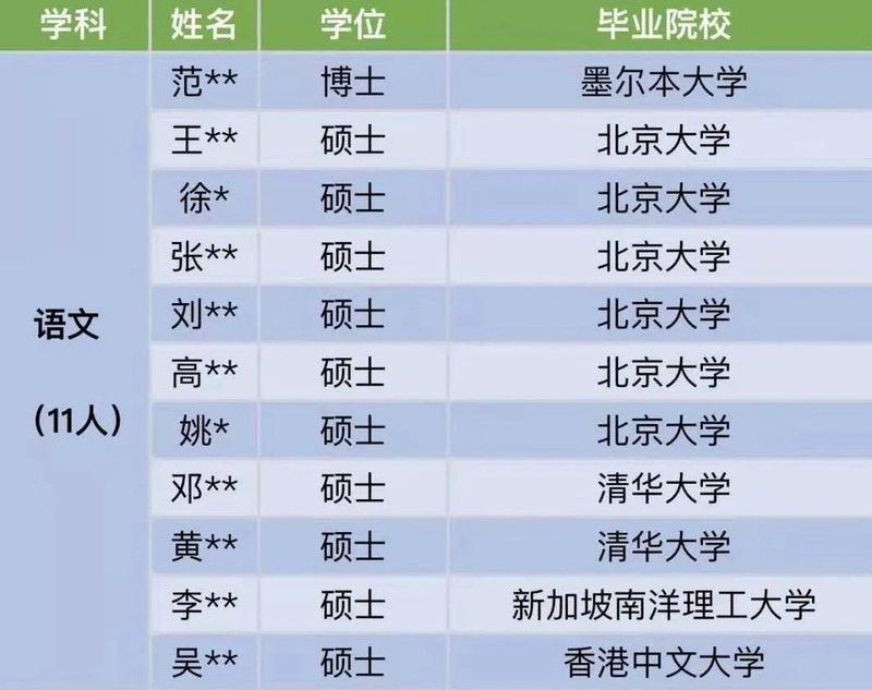 為實現儲才蓄能,校長極力倡導“用最優秀的人培養更優秀的人”,學校僅用不到四年的時間,就引進了100多位哈佛、牛津、劍橋、北大等世界名校畢業生,用于師資力量的擴充。每年深圳中學新入職教師名單公布后,“豪華”陣容總能引發網友熱議。