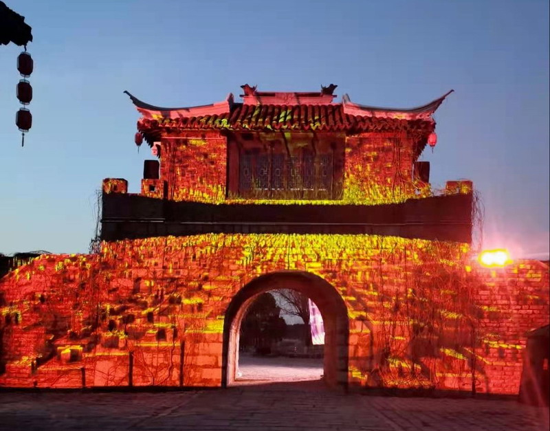 因紅色文化而起,秉承夜游產業發展與多媒體技術革新,沙家浜紅色教育基地開拓新的表現形式3D mapping投影秀全面提升游客體驗,在沙家浜老街城樓上,運用新潮的多媒體技術,通過超高亮度激光投影,展開一卷宏偉的沙家浜歷史畫冊,將一副副經典場景呈現在傳統老城樓和城墻上,結合老建筑風格,給游客展開了一段令人神往的歷史故事。