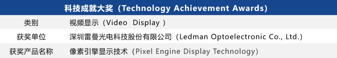 6月7日,ISLE 2021年度科技大獎揭曉,雷曼光電像素引擎顯示技術以其創新性與先進性榮獲科技成就大獎。