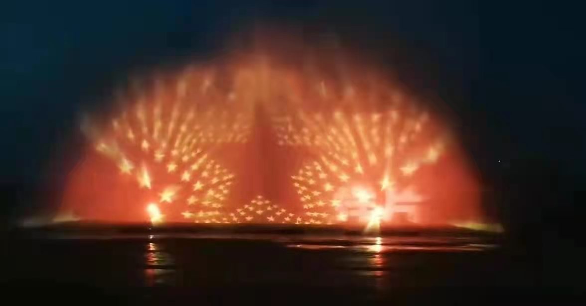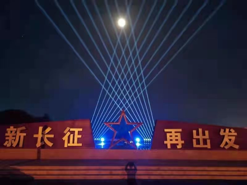新長征,再出發(fā)。江西省贛州市于都縣,中央紅軍長征集結(jié)出發(fā)地,通過2臺NEC 4萬流明4K雙色激光工程投影機(jī)PH3501QL+打造電光流影的水幕投影,將閃閃紅星、五星紅旗、紀(jì)念碑等紅色元素投射到水幕上,給游客帶來全感官沉浸式體驗(yàn)的同時(shí),讓游客重溫崢嶸歲月、感悟長征精神。