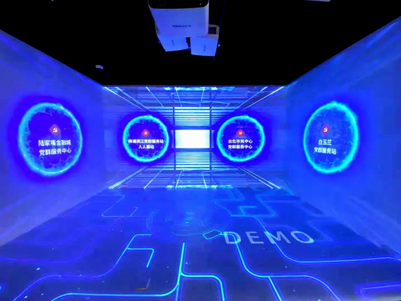 三面環(huán)繞的墻面和地面的組合,自帶沉浸感,不需要借助額外設(shè)備就能夠輕松感受三維影像。將習(xí)近平總書記考察陸家嘴金融城黨群服務(wù)中心、楊樹(shù)浦驛站人人屋站、古北市民中心黨群服務(wù)站等進(jìn)行全景呈現(xiàn),讓黨員群眾身臨其境般感受黨群服務(wù)陣地風(fēng)采。