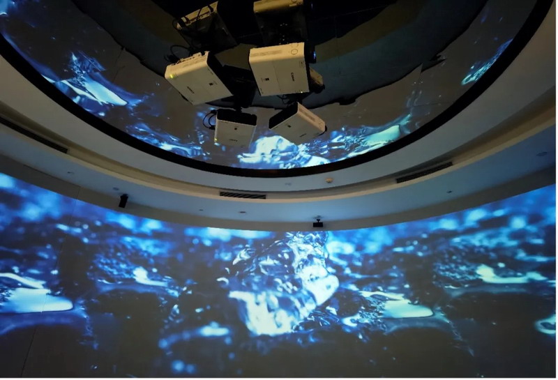 270度弧幕影視廳,投影距離很短,佳能 WUX450ST 特有的原裝0.54的鏡頭,既能滿足現場需求,又能很好的呈現效果,畫質很細膩,整體沉浸體驗感很強。