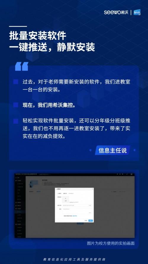 在教育領域,希沃一直致力于推動教育信息化建設,并在2011年參與中國教育技術協會技術標準委員會制定的《多媒體教學環境工程建設規范》起草工作,該標準目前已作為部頒標準發布。