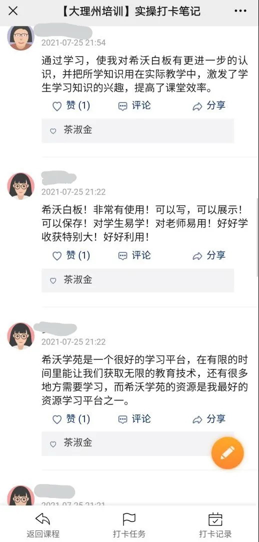 值得一提的是,在培訓過程中,每日參與學習的教師們都積極打卡分享每日的學習成果交流經驗,一齊成長。