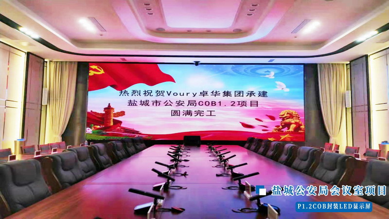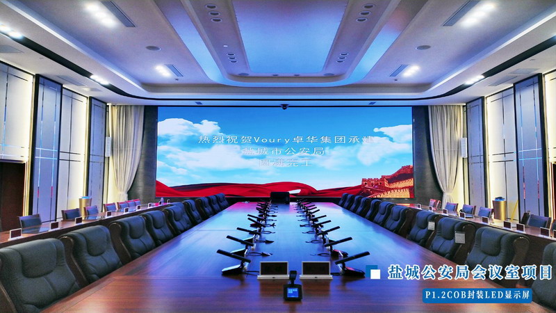 為推動公安工作現代化、智能化,維護社會安定、保障人民安寧的新時代使命任務,鹽城公安為會議室選擇了Voury卓華P1.2COB封裝LED顯示屏,讓部署工作、處理突發事件、應急指揮等工作效率獲得了大幅度的提升,打造了一個功能強大,操作簡單的綜合型會議室。