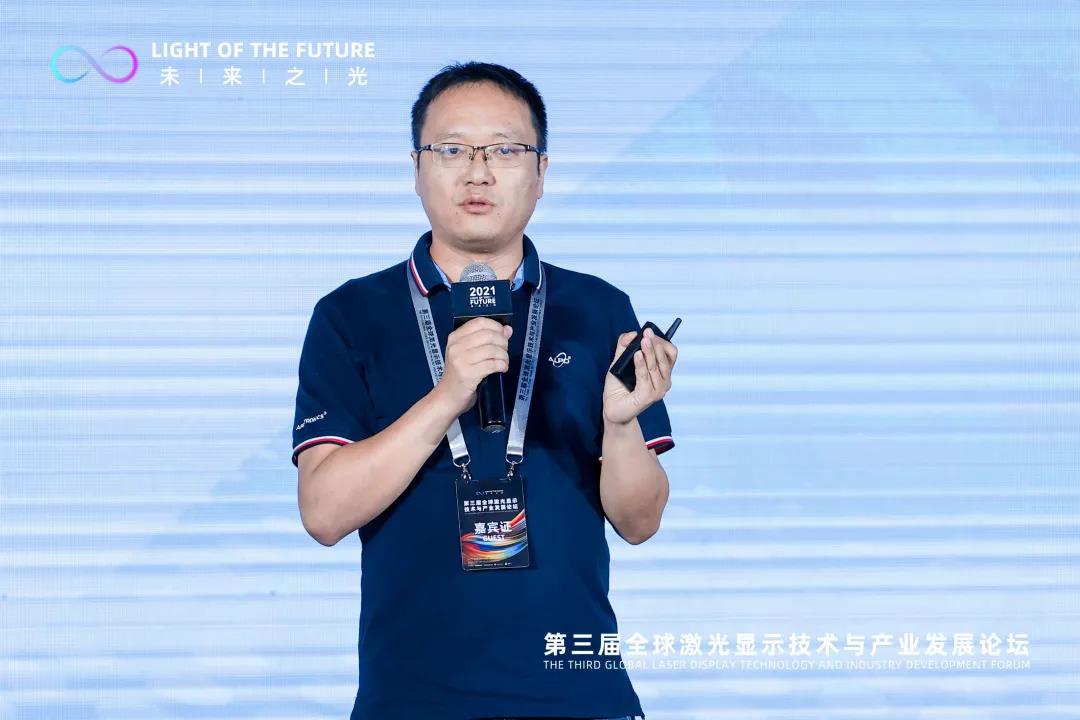 論壇現(xiàn)場,光峰科技產(chǎn)品中心總監(jiān)張賢鵬博士發(fā)表題為《激光顯示,無處不可,無時不可》的主旨演講,從“激光顯示正當時”、“依托技術持續(xù)創(chuàng)新”、“創(chuàng)造價值以人為本”、“行業(yè)合作共贏未來”四個方面做了分享。