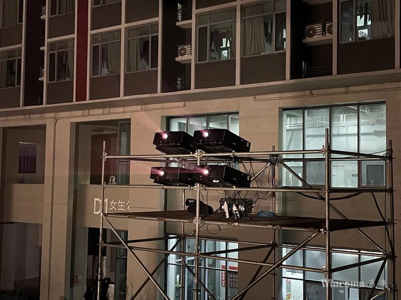 贏康科技有幸參與了北影跨年演出活動,為校區的投影秀演出進行了投影光路設計、產品供應、施工和全程維護等工作。
