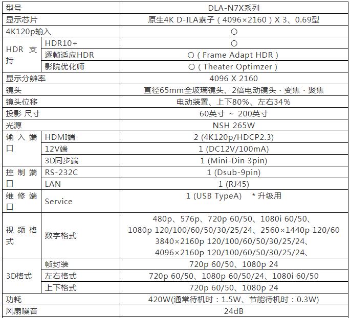 JVC建伍公司旗下卓越影音品牌JVC,發布全新原生4K D-ILA家庭影院投影機DLA-N7X系列,該系列機型搭載最新原生4K(4096 X 2160)芯片,配備最新4K120P輸入和HDR10+功能。