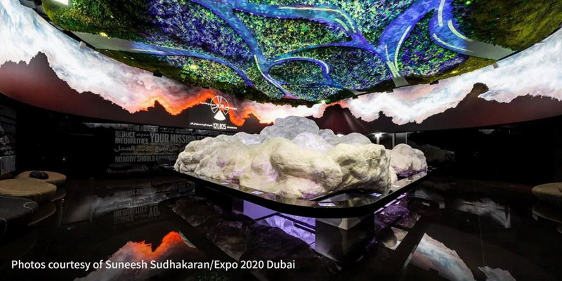 作為本屆迪拜世博會三大主題展館之一的“機遇館”,以“可完成的任務”命名,并通過一個開放式的公共廣場和互動式的參觀體驗,探索并釋放個人和社區(qū)的潛力,呼吁人們成為全球可持續(xù)發(fā)展變革的推動者。展館共安裝了 72 臺 Christie LWU755-DS 和 LWU900-DS 激光投影機,全程為觀眾提供動人的視效。