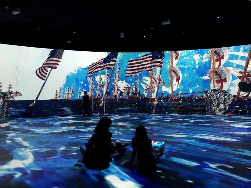 海花島博物館4號(hào)館藝術(shù)科技館是海南省首個(gè)360°數(shù)字媒體藝術(shù)館,建筑面積1639平方米,場(chǎng)館內(nèi)的主要內(nèi)容是直徑為30米的環(huán)幕,和700多平米的空曠地面,用沉浸式的方式展示藝術(shù)家的繪畫作品。