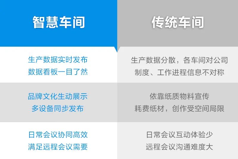 企業生產車間內,一塊小小智慧云屏囊括車間內所有生產信息,融合平臺匯集企業全部生產數據,各車間生產數據實時更新,管理者第一時間洞悉生產最新情況,以便做出下一步決策,公司的制度、要求等信息一鍵同步在各個車間,員工第一時間了解最新動態。