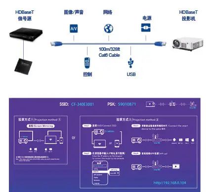 可選配HDBaseT及無(wú)線投屏功能,適用于更多使用場(chǎng)景。只需一根Cat5e/6網(wǎng)線,可實(shí)現(xiàn)最長(zhǎng)100米的高清信號(hào)實(shí)時(shí)傳輸,大大簡(jiǎn)化工程布線,可適用各種復(fù)雜的安裝環(huán)境,提高系統(tǒng)的穩(wěn)定性和可靠性。