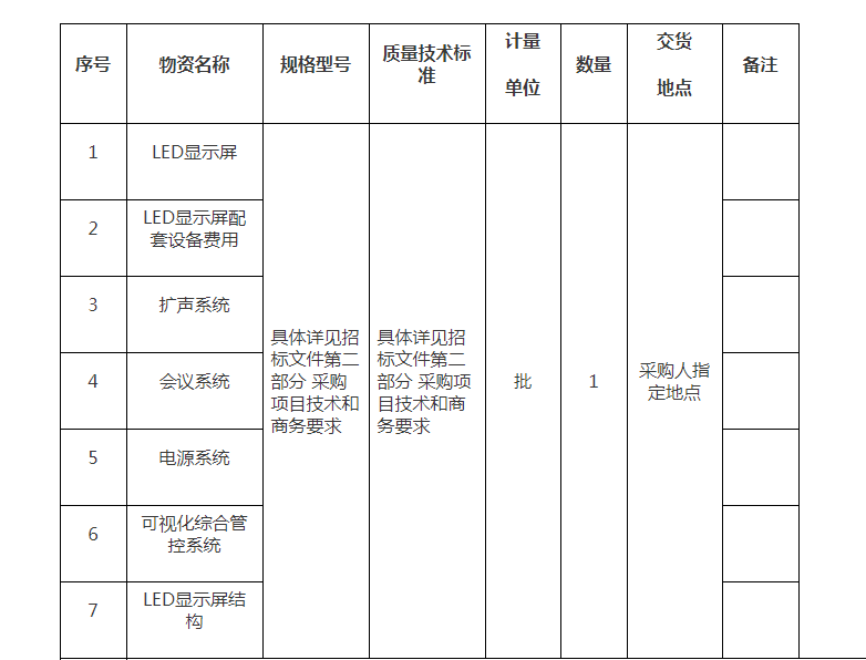 項目名稱:LED屏及配套設施采購項目