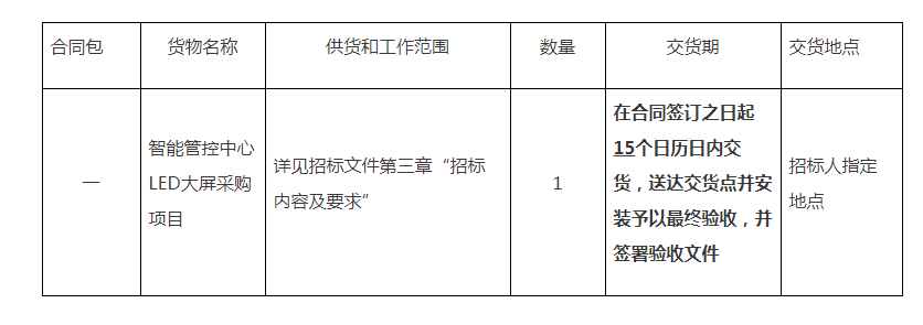 采購(gòu)需求:福建省八方工程招標(biāo)代理有限公司受項(xiàng)目業(yè)主福州新港國(guó)際集裝箱碼頭有限公司委托,現(xiàn)對(duì)福州新港國(guó)際集裝箱碼頭有限公司智能管控中心LED大屏采購(gòu)項(xiàng)目的下述貨物及服務(wù)進(jìn)行公開(kāi)招標(biāo)。資金來(lái)源為企業(yè)自籌,現(xiàn)歡迎合格投標(biāo)人進(jìn)行密封投標(biāo)