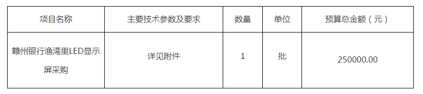 項目名稱:贛州銀行漁灣里LED顯示屏采購項目