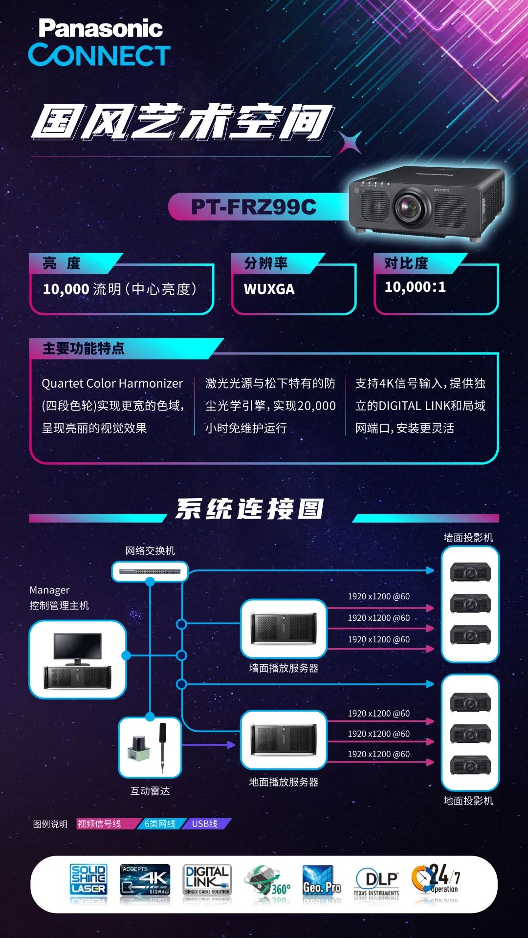 12米長的波浪折幕上,8臺松下PT-SMZ88CL工程投影機投射出意與境交融的畫面。