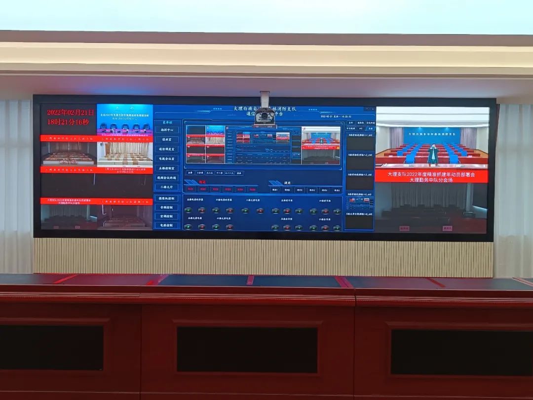 電視會議室2套液晶拼接屏,屏1拼接規模為2X2,共4塊共55寸液晶屏;屏2拼接規模為2X6,共12塊46寸液晶屏。會議中心的高清大屏則用于消防支隊召開社會單位聯動聯席會議、黨建工作、中小學消防教育、官兵學習等使用。GQY視訊小間距產品具備低藍光、低輻射、零噪音、低溫度、觀看舒適等人性化健康設計,可大大減緩決策者因長時間進行指揮調度、會議匯報帶來的視覺疲憊。