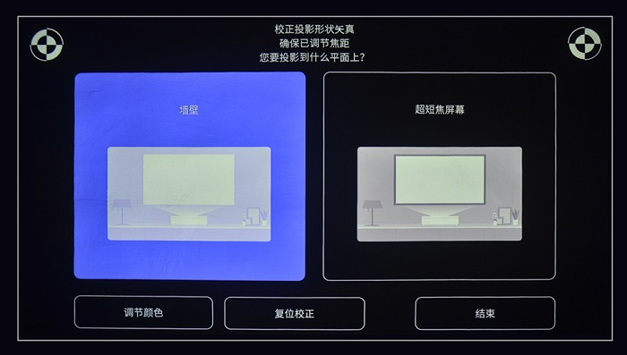 一般來說,激光電視需要專業的畫面校正,才能獲得平整準確的效果,用戶需要繁瑣地反復調試畫面平整與四角清晰。愛普生EH-LS800大大簡化了調整過程,用戶可以通過APP輔助調整、多點校正等方式輕松、高效率的獲得完美畫面。用戶只需要跟隨屏幕上的引導提示,一步步操作就能選擇模式,進行基礎設置,完成畫面調校。