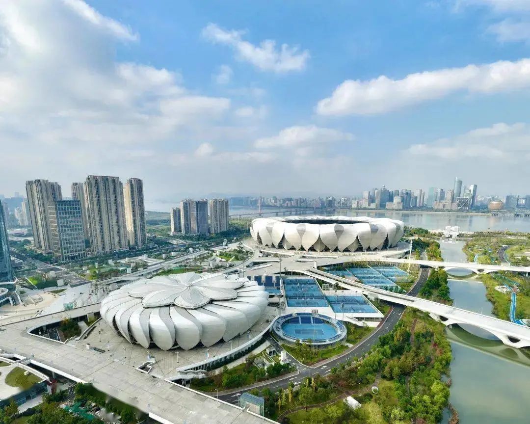 中國首座亞運會賽事標準的專業電子競技場館——杭州電競中心位于杭州北景園生態公園,以“星際漩渦”為設計理念,整個場館總建筑面積為8萬平方米。