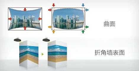 在折角墻、曲面、球面或其他類型的屏幕投射時