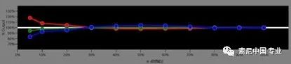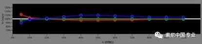 通過校準(zhǔn)后的色度圖可以看出,XW5000的色彩確實(shí)保持了索尼一貫的色彩準(zhǔn)確的優(yōu)點(diǎn),色彩過渡線性非常好,沒有因?yàn)椴捎脝紊す舛踊@應(yīng)該歸功于三片式架構(gòu)的優(yōu)勢(shì)。