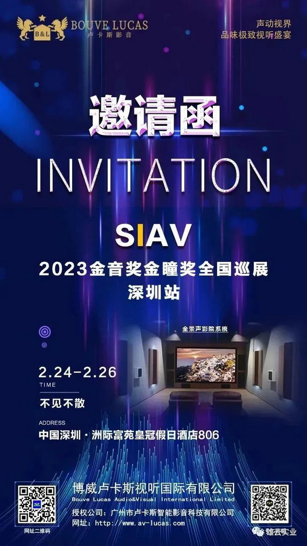 2023 SIAV“金音獎金瞳獎全國巡展-深圳站”即將開啟,雄云實業(yè)攜旗下雄云視聽設(shè)備有限公司和廣州市盧卡斯智能影音科技有限公司將于深圳與大家見面。