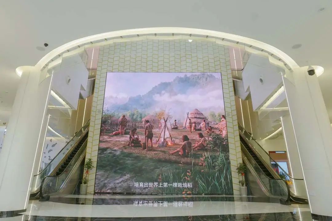 來到城市館的序廳,LED巨幕尤為引人注目,技術與文化藝術深度交融,直觀地勾勒出萬年縣作為世界稻作文化發源地、中國貢米之鄉、中國優質淡水珍珠之鄉的發展歷程。