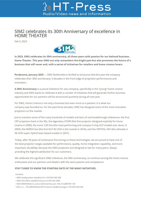 原鏈接:https://ht-press.com/2023/02/09/sim2-celebrates-its-30th-anniversary-of-excellence-in-home-theater/
