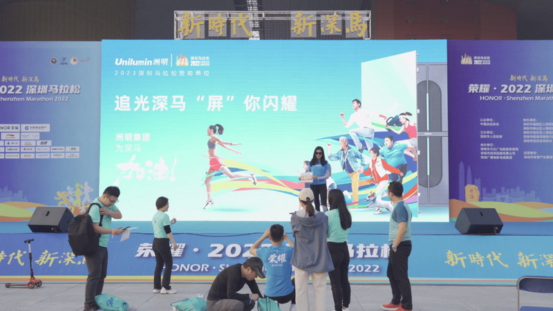 作為本屆深馬賽事支持單位暨指定大屏合作單位,洲明科技為開幕式現場、起跑點及室內貴賓廳、終點及室內貴賓廳共提供了5塊LED大型顯示屏及超高清顯示解決方案。