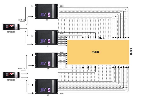 為滿足頒獎典禮現(xiàn)場信號的呈現(xiàn)和視覺效果展示,盛典現(xiàn)場主屏總分辨率16800*30240,使用4臺X7設備作為2主2備,實現(xiàn)超大屏拼接顯示,確保了現(xiàn)場信號顯示的穩(wěn)定和完美呈現(xiàn),又以YUV4:4:4超高色域呈現(xiàn)前端8路4K信號的拼接顯示,純享視覺盛宴,助力溫暖事跡呈現(xiàn)!
