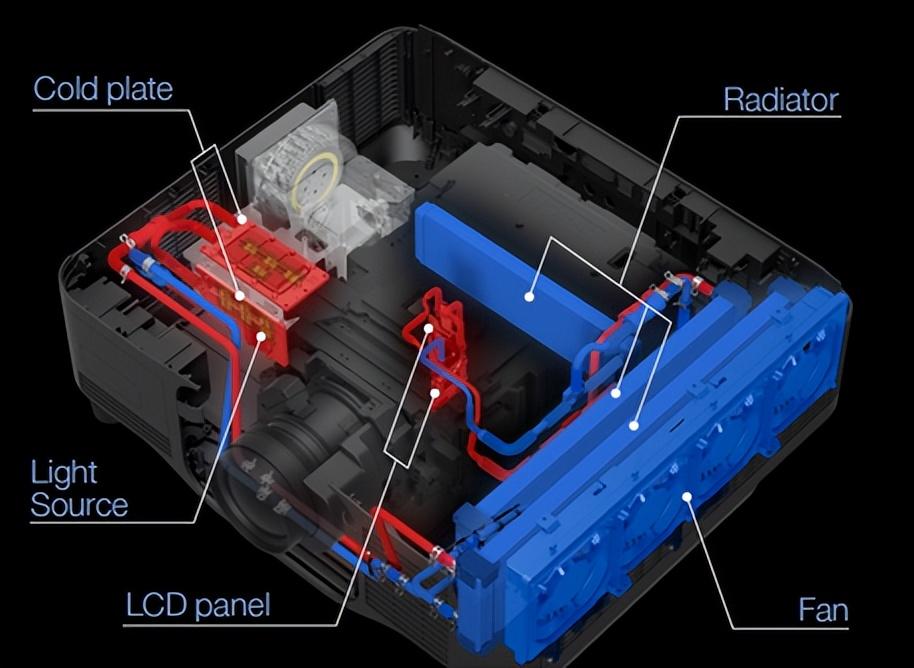 愛普生利用十多年的研發經驗和專業行業知識,開發了一種更簡化但更精密的液體冷卻結構。獨特的液體冷卻系統可以冷卻光學引擎和激光光源單元,使產品變得更加緊湊小巧。