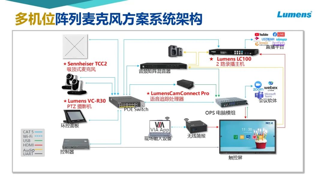 “對市場來說,這是一個激動人心的解決方案,因為它匯集了會議室技術領域的兩大頂尖公司。通過為我們的HD和4K PTZ云臺攝像機添加精準的語音追蹤功能,我們力求打造全新水平的會議體驗,并以此成為行業新標準。”Lumens 產品總監 Steven 評論道。