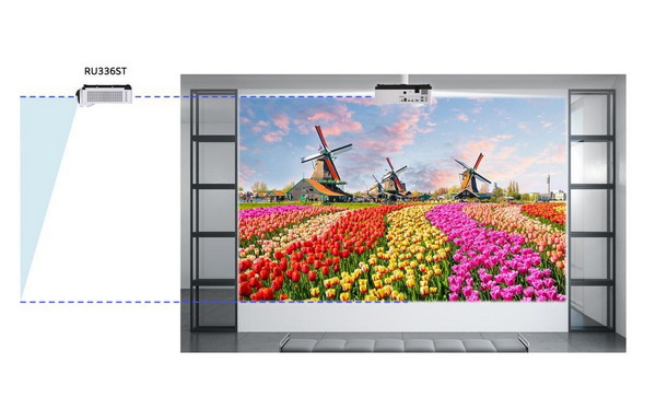 另一方面,RU330、RU336ST在鏡頭功能設計上,高度“中國市場化”。其中,RU336ST是 “0仰角設計”的超短焦高亮激光工程投影機型。其0.44:1的投射比,結合0仰角設計,滿足更小的“水平和垂直”空間的投影需求。