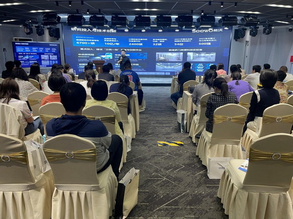 為了更系統地加深鄉村教師對信息技術教學應用的認知,希沃相關負責人從日常教學情景出發,全面展示了包括智慧黑板,講臺,錄播,觸控一體機,電腦一體機,VR一體機,云屏,班牌等在內的數字校園教學環境建設方案,以平臺數字教學新生態促進教學互動,為鄉村老師們創新課堂,因材施教打開新思路。