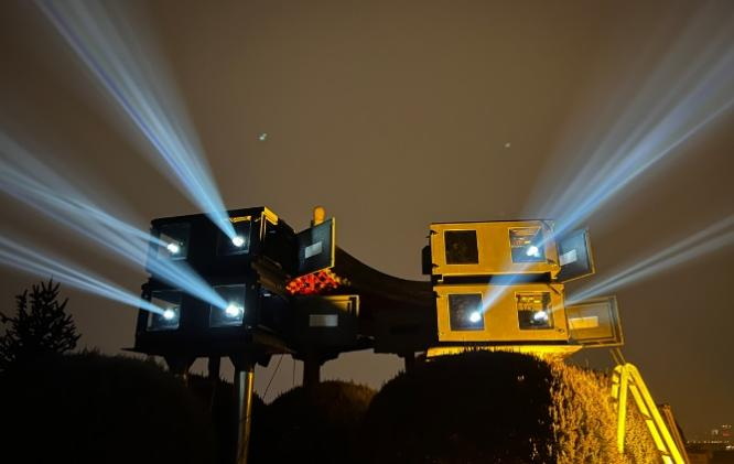 DWU1100-GS 投影機采用雙層堆疊方式,安裝在距鎮北臺約 100 米處,并有專用防風雨外殼保護,確保遠處也能看到投影。投影內容寬60米,高8米(197英尺 x 26英尺),鋪陳出這座碉樓歷經 400 年滄桑變化的歷史和文化意義,以及它為榆林和邊疆地區的和平發展所做出的貢獻。為了進一步強化表演的視覺觀感,還在鎮北臺城墻上安裝了一組激光燈,結合長城這一段的獨特布局,打造多維度多層次的視覺體驗,烘托出孤城絕塞的震撼視覺體驗。