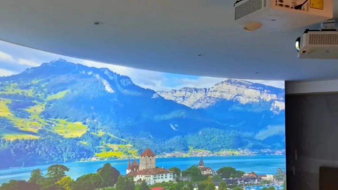 哈爾濱旅游學院展廳——9臺Venus系列高亮短焦投影機通過拼接融合,打造270°沉浸式展廳,配合畫面內容,讓觀眾近距離感受畫面帶來的沖擊力。