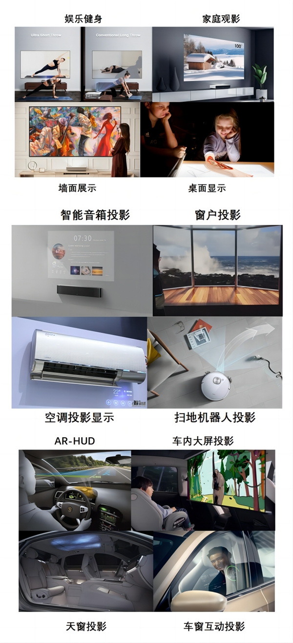 在新型顯示技術(shù)領(lǐng)域,超短焦鏡頭是一種新興的產(chǎn)品,它能夠在幾十厘米或幾厘米的距離內(nèi)投射出大畫面,相比通常只能安裝在房頂中間的常規(guī)投影機(jī)具有更加節(jié)省空間、安裝方便等優(yōu)勢。同時(shí)還可提高光源利用率,有效克服環(huán)境光干擾。同時(shí),超短焦光學(xué)在桌面教育、智能家電、汽車顯示、家庭娛樂等領(lǐng)域有著廣泛的應(yīng)用前景和市場潛力。