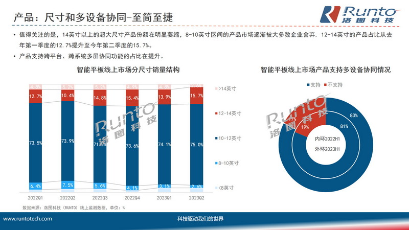 洛圖科技(RUNTO)之前發布的《半年報 | 2023上半年中國智能平板市場總結與展望》一文中闡述了品牌、技術、場景等維度的市場狀況,本文則主要聚焦在產品的發展特點和趨勢: