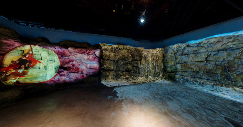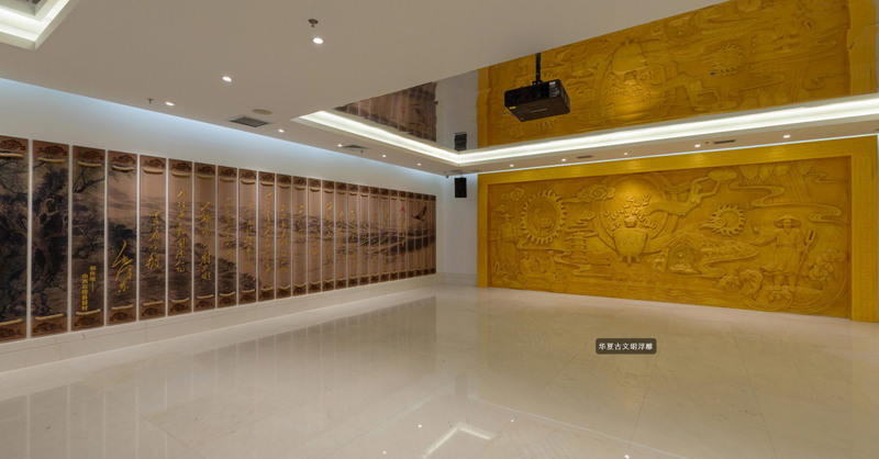 華夏古文明浮雕投影,主畫(huà)面以浮雕結(jié)合投影出現(xiàn)。參觀者通過(guò)光影變幻感受華夏古文明。