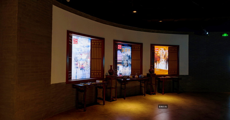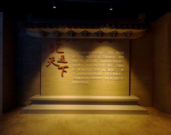 主要展示晉商文化以義取利、開(kāi)拓創(chuàng)新、經(jīng)世濟(jì)民的三大精神,并通過(guò)投影卷軸展示晉商開(kāi)拓的匯通四海的商業(yè)要道萬(wàn)里茶道。