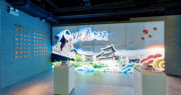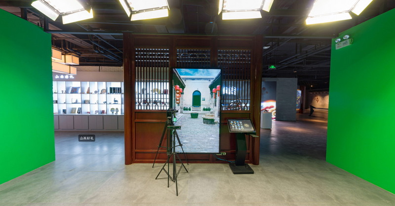 該展區(qū)有三個(gè)互動(dòng)體驗(yàn)區(qū)——票匯文創(chuàng)互動(dòng)打印數(shù)字長(zhǎng)屏、山西大院VR游、虛擬演播室。游客可以將票號(hào)文化、優(yōu)美風(fēng)景、愛(ài)情宣言、特色剪紙、流行卡通進(jìn)行數(shù)字化處理,并打印帶走。戴上VR眼鏡,穿越到古老的大院,看看喬家與王家的百年景觀。