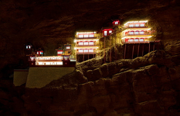 在“秘境”展區(qū),數(shù)字再現(xiàn)藝術(shù)所蘊(yùn)含的文化靈光,經(jīng)歷百年千年依然矗立在這片神奇土地上的文物,永樂(lè)宮、巖山寺、開(kāi)化寺、綿山、娘子關(guān)、平遙古城、云岡石窟……拾級(jí)而上沉浸式景區(qū),仿佛走進(jìn)了微縮空間,一覽其全部造型。