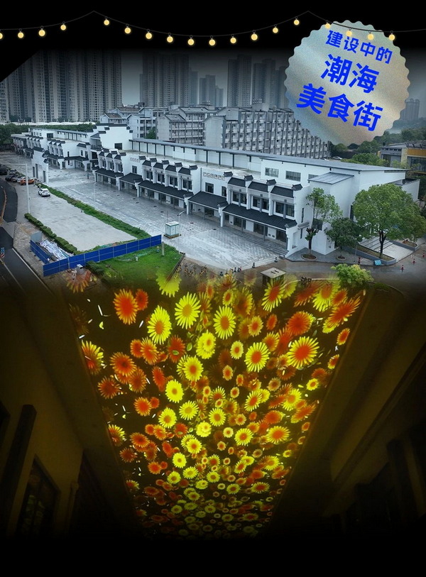 現在,潮海美食街開業在即,跟隨光峰工程投影機的光影畫面,我們提前去看看潮海美食街的天幕效果如何。