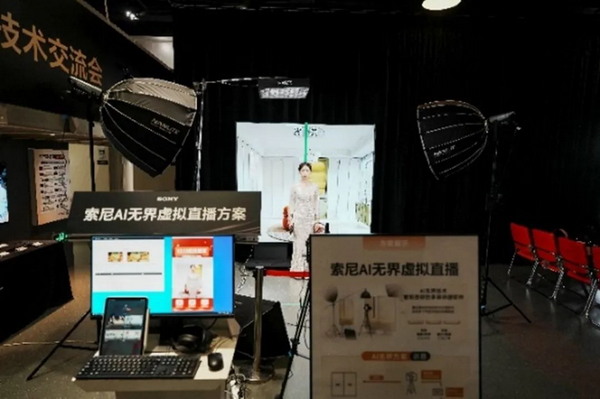 在本次交流會上,索尼展示了其在直播領域的最新成果,包括與索尼數字電影機CineAltaB結合的黑彩晶背景直播方案、索尼FX系列電影機與BRAVIA商用顯示器背景組合方案以及AI無界虛擬直播方案。