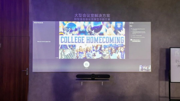 針對15人以上的大型會議空間,索尼與羅技進一步合作,推出新型混合會議寬屏顯示新方案。該方案由索尼激光工程投影機VPL-F755HZ和羅技4K音視頻一體機CC5500E組成,通過單臺投影機即可輕松實現21:9寬屏顯示畫面,帶來大畫面和清晰的演示內容,創造沉浸式的會議體驗。