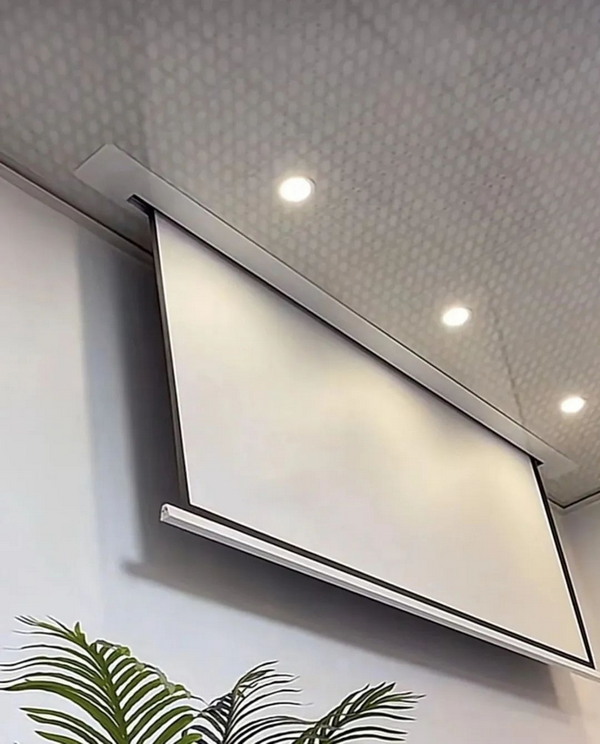 電動(dòng)隱藏天花幕采用隱藏式設(shè)計(jì),當(dāng)你不需要使用時(shí),它可以完全收回到天花板內(nèi)部,不會(huì)占用客廳的任何空間。這樣,你的客廳既能保持整潔美觀,又能隨時(shí)變身為家庭影院。而且,天花幕的材質(zhì)和顏色可以與你的家居風(fēng)格相協(xié)調(diào),融入整體裝修設(shè)計(jì)中。