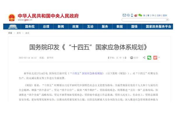 《“十四五” 國家應急體系規劃》總體目標明確,到 2025 年,應急管理體系和能力現代化建設要取得重大進展。形成具有中國特色的應急管理體制,建成權威高效的國家應急能力體系。重大安全風險防范機制不斷健全,救援力量建設加強,法治、科技信息化及綜合保障能力大幅提升。安全生產與防災減災形勢趨穩向好,自然災害防御水平提升,全社會應對災害事故能力顯著增強,為國家穩定發展和人民生命財產安全提供堅實保障。