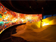 緩緩步入第二展廳,6米多高的紗幔上,“陰陽散聚”的古老圖騰,在紗幔上緩緩流淌,如夢似幻。