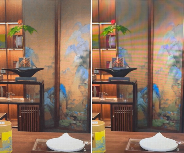 索尼防眩大師商顯作為純黑背景的直播效果(左),不受環境光變化影響(右)